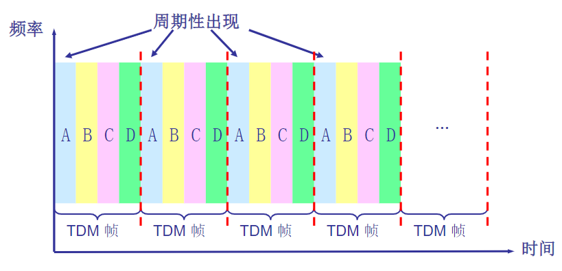 时分多路复用(TDM)是将时间划分为一段段等长的十分复用帧(TDM帧),每个用户在每个TDM帧中占用固定的时隙,每个时隙允许用户发送一定的数据。每用户所占用的时隙是周期性出现,用户是在不同的时间占用相同的频带宽度。此时,大家使用的频率都一样了~