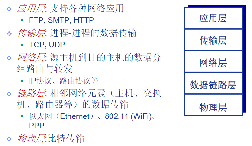 - 接入网络,物理介质:包括有线或无线通信链路。