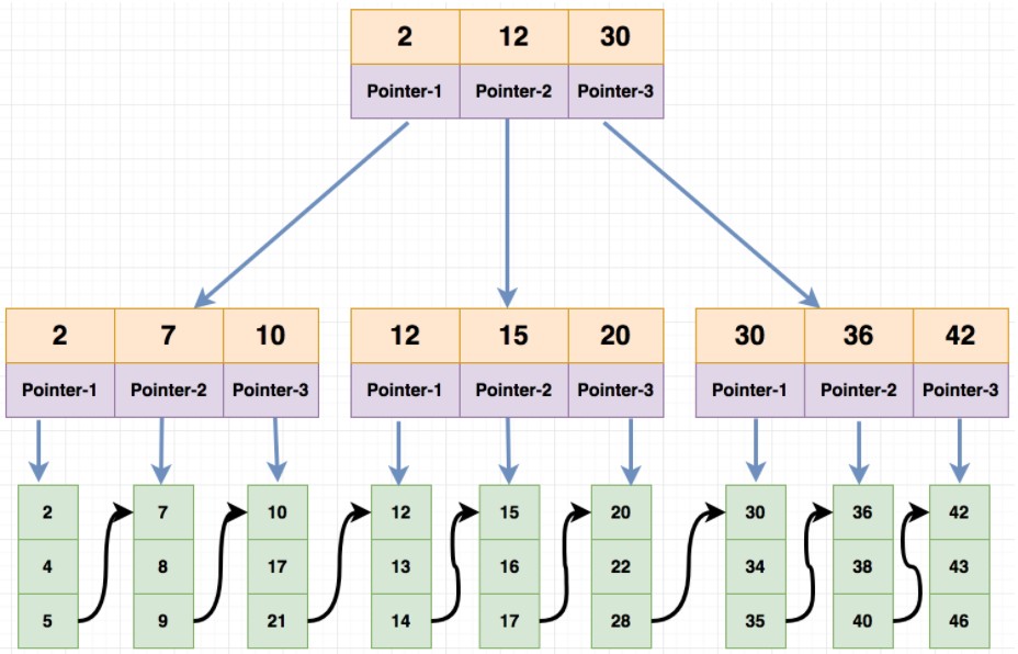 当查询数据时,b+tree采用左闭右开的原则,然后非叶子节点存储key,不会存储data的,叶子节点存储key和数据,而且要尽量减少key值的占用空间(同理上面所介绍的)。